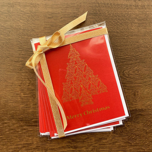 Set of 6 Red Folk Trees | Holiday Cards